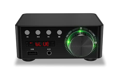 Etlephe 4 Channel Mini-förstärkare, Hi-Fi-förstärkare, Bluetooth 5.0 Stereo-förstärkare, 1200 W, FM-radio, bärbart SD-kort/USB-ingång/FM-radio, för hemma eller din bil, 50 W X4