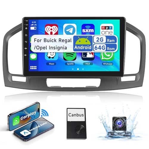 【2+64G】 Podofo 9'' bilradio 2 Din för Buick Regal 2009-2013/Opel Insignia 2008-2013 Wireless Carplay Android Auto, Android 13 Radio Bluetooth HiFi RDS/FM + AHD backkamera/DVR/Canbus