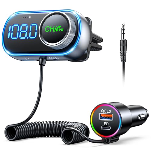 EOIWUY Bluetooth 5.3 Biladapter, HiFi Basboost Bil Bluetooth FM-överförare med PD 36W & QC3.0 18W Snabbladdare, Trådlös Radio Händsfri Bluetooth Bilkit, Röstassistent, AUX Utmatning