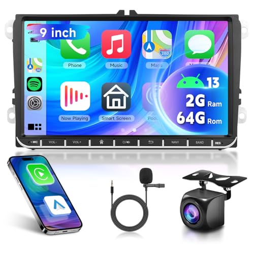 【2 + 64G】podofo 9 tum bilradio 2 Din Für VW Golf 5 6 Passat Polo Touran Tiguan Seat trådlös Carplay Android Auto med HiFi Car Radio Bluetooth RDS/FM-radio + AHD backkamera + CANBUS
