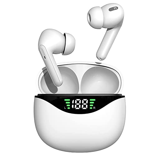 Dude Wipes trådlösa bluetooth-hörlurar, trådlösa sporthörlurar HiFi stereo ljud, bluetooth-hörlurar med HD mikrofon, med minskning, 30H vattentät pekkontroll, för iOS/Android vit