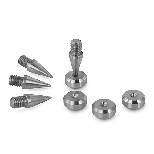 PrecisionGeek M6 högtalarspikar och isoleringsdynor – spikar i rostfritt stål med 16 mm basdynor – set för HiFi-högtalare, skåp, soundbars