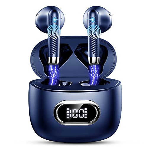 Drsaec Bluetooth 5.3 hörlurar, HiFi Stereo Bluetooth-hörlurar Trådlösa hörlurar i örat med ENC-mikrofoner, brusreducerande trådlösa sporthörlurar IP7 vattentäta, 42H trådlösa LED-hörlurar, blå