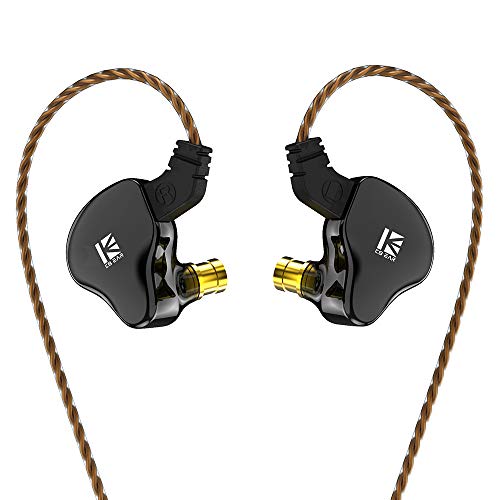 Yinyoo KBEAR KS2 hörlurar stereo bas i örat hörlurar, HiFi Over Ear hörlurar headset brusreducering 1BA 1DD Hybrid IEM med avtagbar kabel för promenader (med mikrofon, svart KS2)