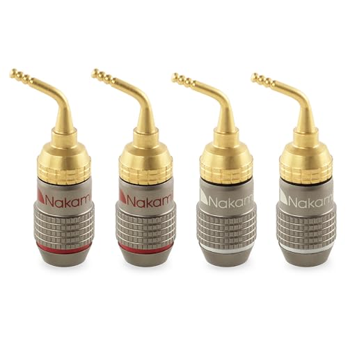 Nakamichi Excel Series 24K guldpläterad bananplugg 12 AWG - 18 AWG Gauge Storlek 4 mm för högtalare Förstärkare Hi-Fi AV-mottagare Stereo Hemmabio Ljudkabel Kabel Skruvkontakt (4 st (2-par), Rät Vinklad bananplugg)