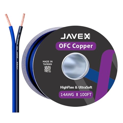 JAVEX högtalarkabel 14-Gauge [2,11 mm2] [0,16 mm strängar syrefri koppar 99,9%] strängad koppar, blå/svart, kabel för Hi-Fi-system, förstärkare, AV-mottagare och billjudsystem, 30,5 m