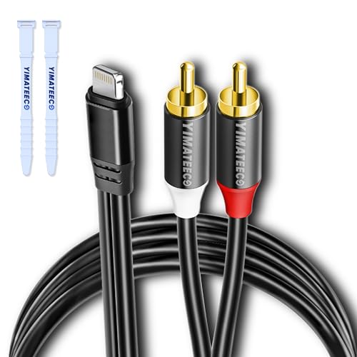 YIMATEECO Lightning till RCA-kabel [MFi-certifierad], RCA till iOS-adapter 2RCA ljudkabel stereo Aux Y splitter adapterkabel för Hi-Fi-förstärkare, kompatibel med iPhone IOS (1 m Lightning till 2RCA)