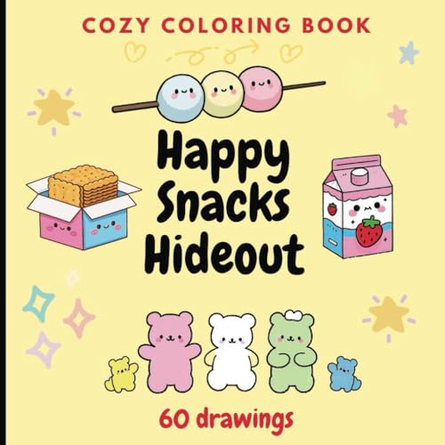 Happy Snacks Hideout: A Cute and Cozy Kawaii Coloring Book: 60 Adorable Snack-Themed 8.5 x 8.5 inch Illustrations to Color, Perfect for Kids, Teens, and Adults Seeking Fun and Relaxation