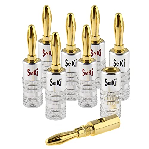 SeKi 8x banankontakter 24K förgylld för högtalarkabel upp till 6 mm² med färgkodning (röd och svart) för anslutning av kabeln till HiFi-anläggningar, slutsteg, AV-mottagare, förstärkare och stereosystem