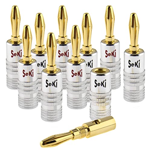SeKi 10 st. banankontakter 24K förgyllda för högtalarkabel upp till 6 mm² med färgkodning (röd och svart) för anslutning av kabeln till HiFi-anläggningar, slutsteg, AV-mottagare, förstärkare, stereosystem