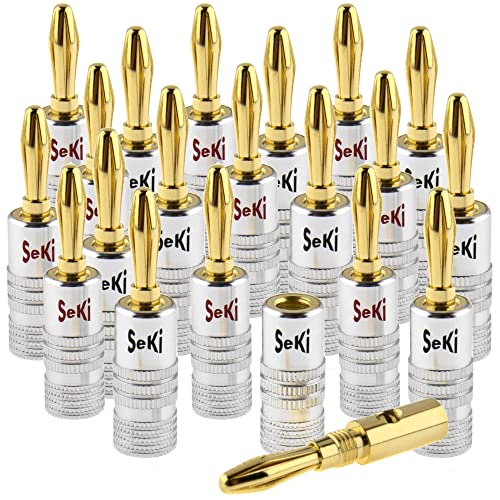 SeKi 20 x banankontakter 24K förgyllda för högtalarkablar upp till 6 mm² med färgkodning (röd och svart) för anslutning av kabeln till HiFi-system, slutsteg, AV-mottagare, förstärkare, stereosystem