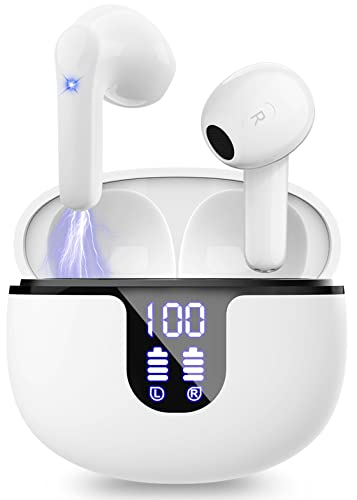 Drsaec Bluetooth-hörlurar, Bluetooth 5.3 Trådlösa in-ear-hörlurar med 4 mikrofon, 2024 Trådlösa hörlurar ENC Brusreducering, Mini Bluetooth-hörlurar IP7 Vattentät HiFi Stereo/LED/USB-C Vit