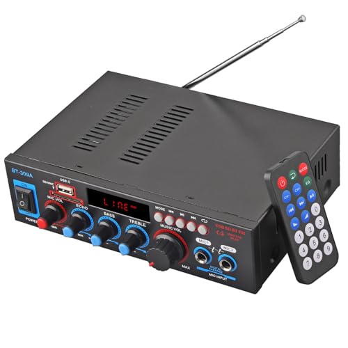 Woopker Bluetooth 5.0 HiFi Stereo mini digital ljudmottagare effektförstärkare med USB, SD, FM, 2 mikrofon Echo ingång, RCA (AK45 Pro)