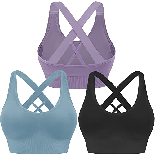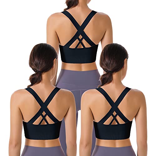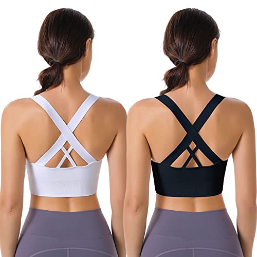 Evercute Sports Bra for Women Padded Medium Support Criss Cross Strappy Bras Seamless High Impact Yoga Exercise Athletic Bras
