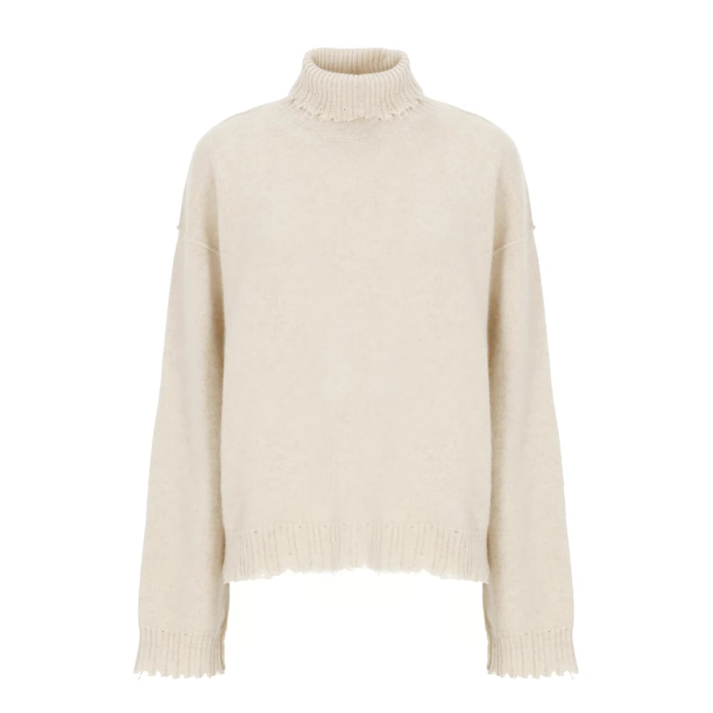 UMA Wang, Stickade Tröjor , Dam, M, Beige Cashmere High Neck Sweater