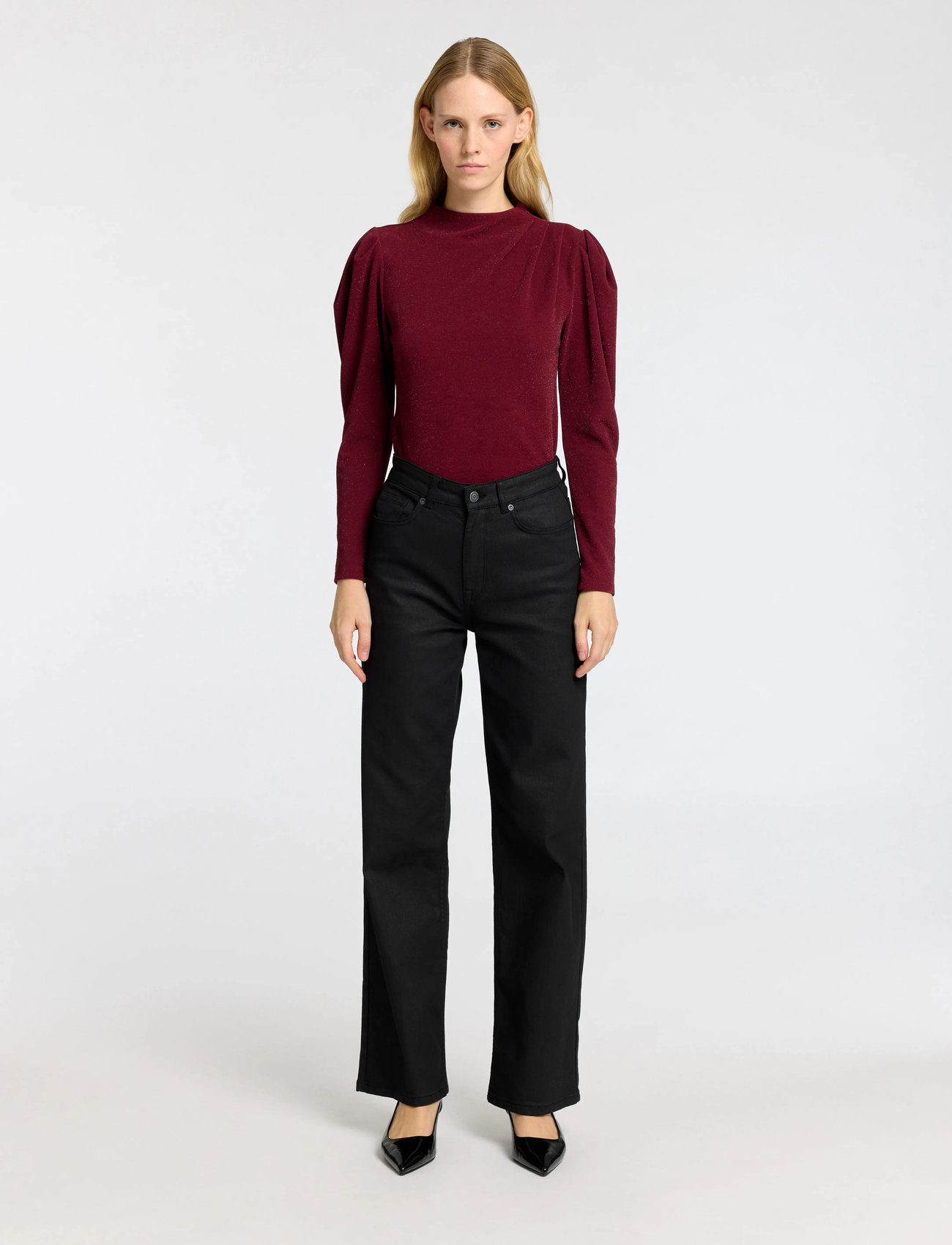 Selected Slfmarwa Ls High Neck Top - Burgundy - XL