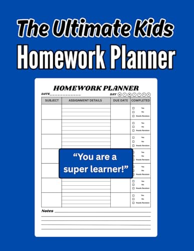The Ultimate Kids Homework Planner: Stress Free Study Organizer for Elementary, Middle/High School, College Students, Kids, Teens Boys/Girls, | Large ... | Undated Daily Tracker Journal Notebook