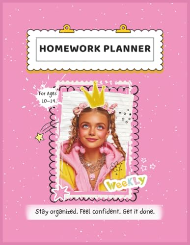 Homework Planner: Assignment Tracker for Middle and High School Students Girls 8,5" X 11" - 120 Undated Weekly Organizer Notebook Pages Paperback