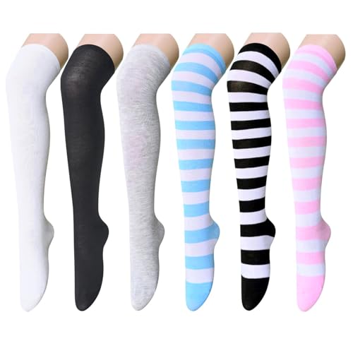 Striped Thigh High Socks for Women - Over the Knee School Socks for Teen Girls