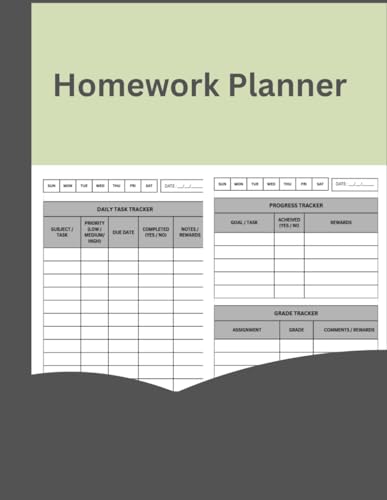 Homework Planner for ADHD Students : Daily Schoolwork Organizer, Goal Tracker With Reward Chart: Undated Assignment Tracker Notebook for Elementary, Middle & High School Boys and Girls