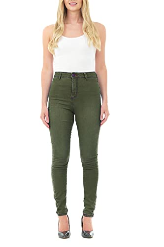 M17 Kvinnor damer High Waist-jeans Skinny Fit casual bomullsbyxor byxor med fickor, Khaki, 38 SE