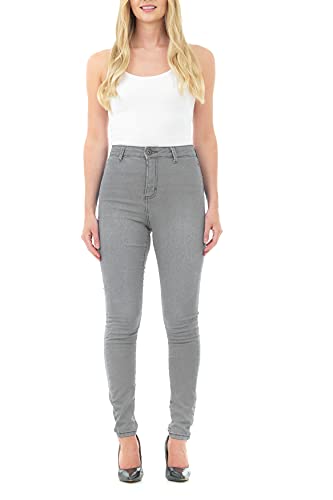 M17 Kvinnor damer High Waist-jeans Skinny Fit casual bomullsbyxor byxor med fickor, Midgrå, 42 SE