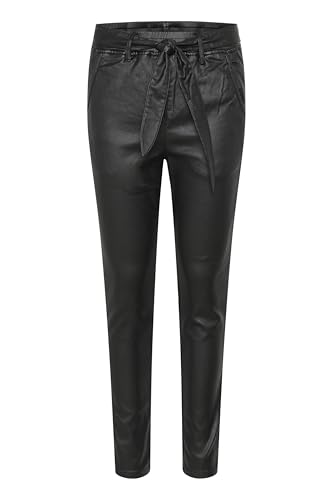 Cream Kvinnors byxor Skinny Fit High-Waisted Belted Cropped Elastic Waist, Pitch Black, 38