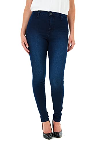 M17 Kvinnor damer High Waist-jeans Skinny Fit casual bomullsbyxor byxor med fickor, Mörk tvätt blå, 52 SE