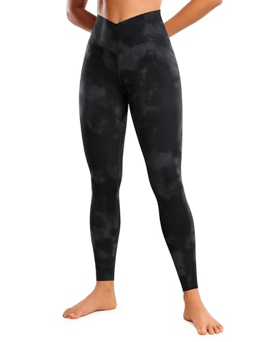CRZ YOGA Womens Butterluxe Cross Waist Träning Leggings 25" / 28"- V Crossover High Waisted Gym Athletic Yoga Leggings Black Tie Dye Flowers S