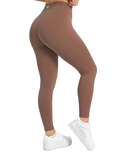 Aoxjox High Waisted Workout Leggings for Women Tummy Control High Rise Scrunch Buttery Soft Scarlett Yoga Pants 27" (Fudge Coffee, Small)