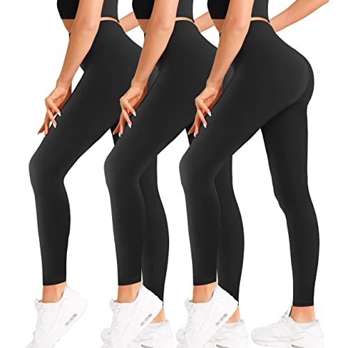 3 Pack Leggings for Women High Waisted No See-Through Tummy Control Soft Yoga Pants Womens Workout Athletic Running Leggings Black/Black/Black