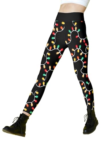 Eyanse Christmas Leggings for Women - Soft High Waisted Black Pants With Christmas Lights - Funny Holiday PJ Pants for Running, Yoga, Workout