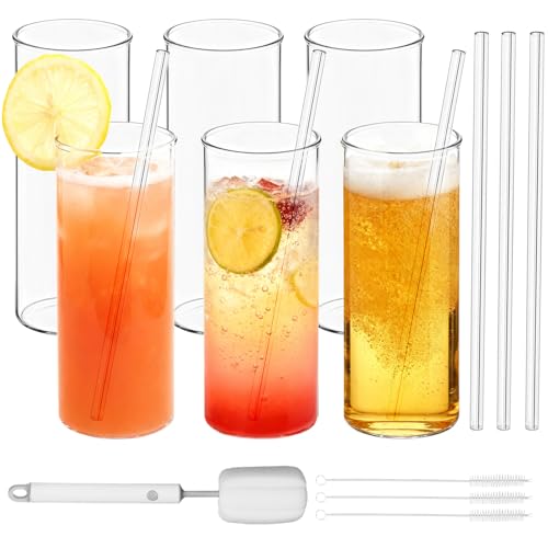 16oz Highball glasögon uppsättning av 6, tjockt och hållbart labb-klass borosilikatglas, diskmaskin mikrovågsfrys säker, innehåller glas rengöringsborste, blyfri för vatten, whisky, cocktails, öl