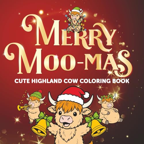 Merry Moo-Mas!: A Cute Highland Cow Christmas Coloring Book For Kids And Adults | 50 Bold And Easy Designs For Festive Fun And Relaxation