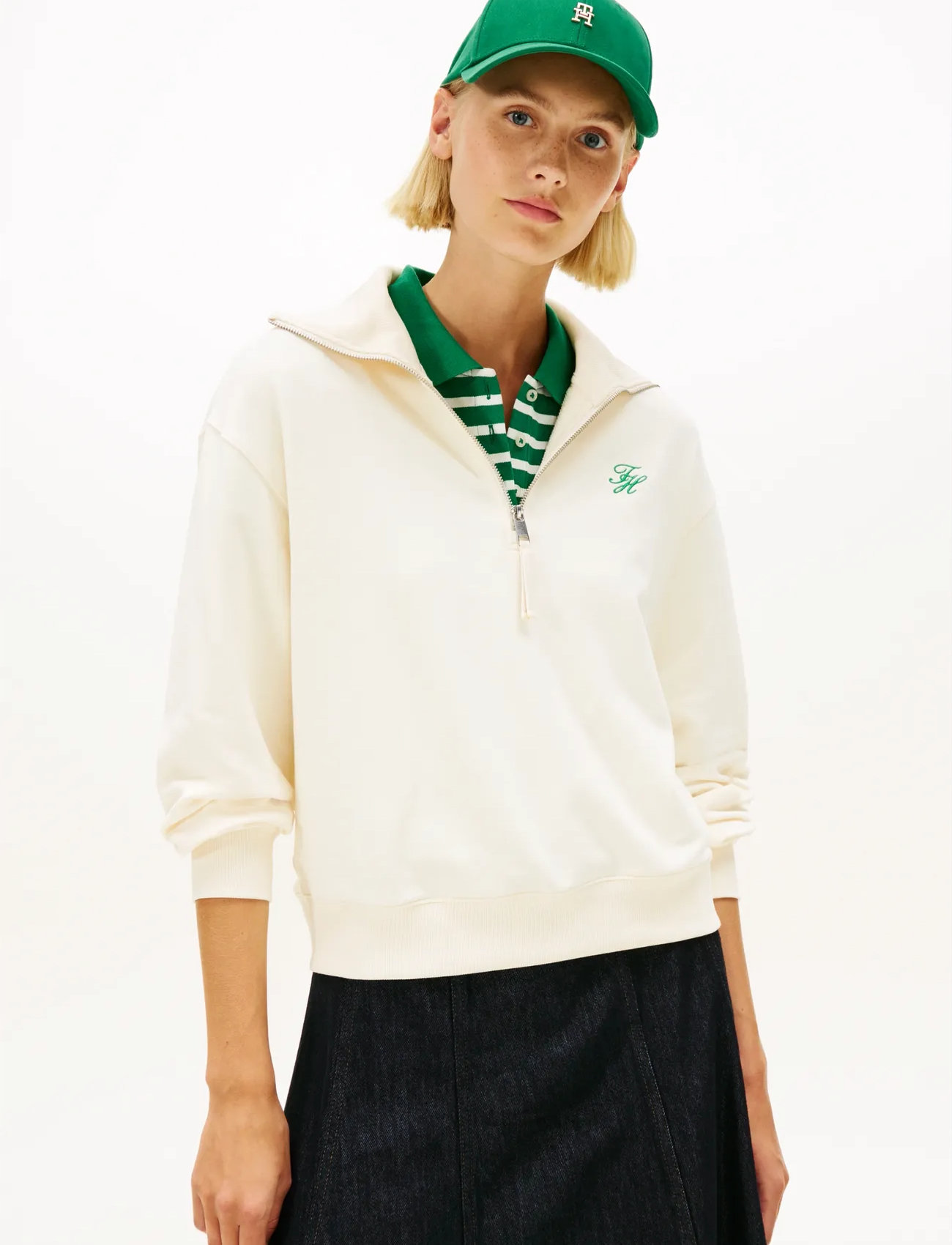 Tommy Hilfiger Th Script Half Zip Terry Swtshrt - Cream - XS