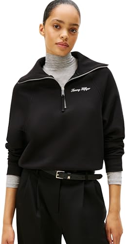 Tommy Hilfiger dam klassisk SCRIPT FLEECE HALF-ZIP WW0WW46632 halv dragkedja tröja, svart, XL, svart (svart), XL