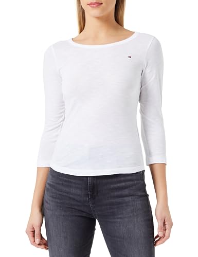 Tommy Hilfiger Långärmad T-shirt för dam 1985 Slim Sub Basic, Vit (Th Optic White), XXS