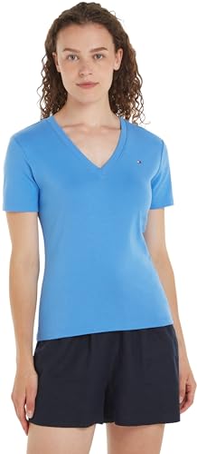 Tommy Hilfiger dam-t-shirt kortärmad New Slim Cody V-ringad, Blå (blå spell), XXS