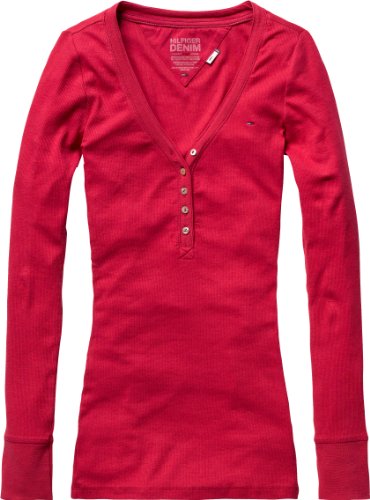 Hilfiger Denim dam T-shirt slim fit, Lola Henley l/s/1657614813, storlek 32 (XS), rosa (543/Raspberry Wine), Rosa (543/Raspberry Wine), 32 SE