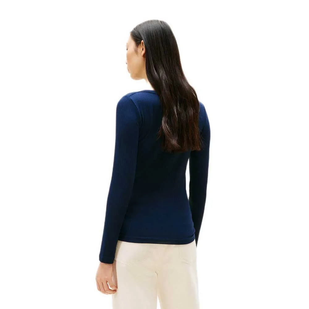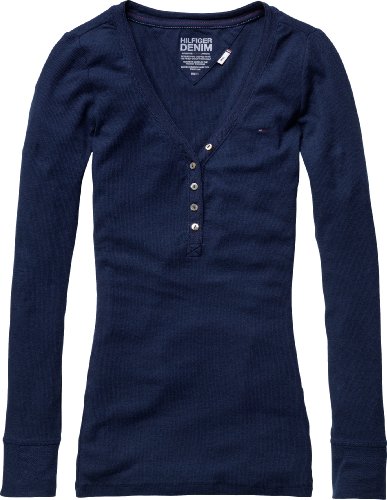 Hilfiger Denim dam T-shirt slim fit, Lola Henley l/s/1657614813, storlek 38 (L), blå (002/Black IRIS), Blå (002/Black Iris), 38