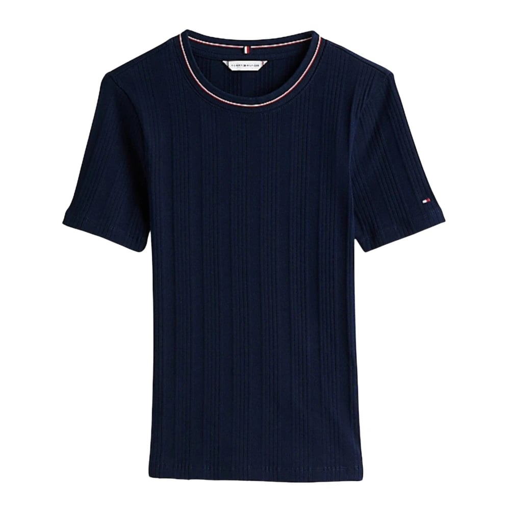 Tommy Hilfiger, Toppar , Dam, S, Bomull, Vintage Style Slim Fit Ribbed T-Shirt