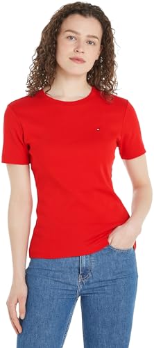 Tommy Hilfiger Dam Ny Slim Cody Rund hals Kortärmad T-shirt, Röd (hård röd), XXL stor tall