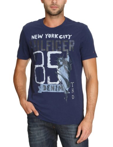 Hilfiger Denim herr Slim Fit långärmad T-shirt 1957802537 Eli Cn Tee S/S 1, Blå - Blå (Peacoat), 50 SE
