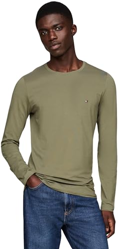 Tommy Hilfiger herr stretch slim fit långärmad t-shirt MW0MW10804, S/S t-shirt, grön, XXXL, Grön (slaget grön), 3XL