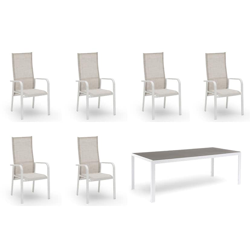 Hånger matgrupp vit - 6 positionsstolar - 210x90 cm