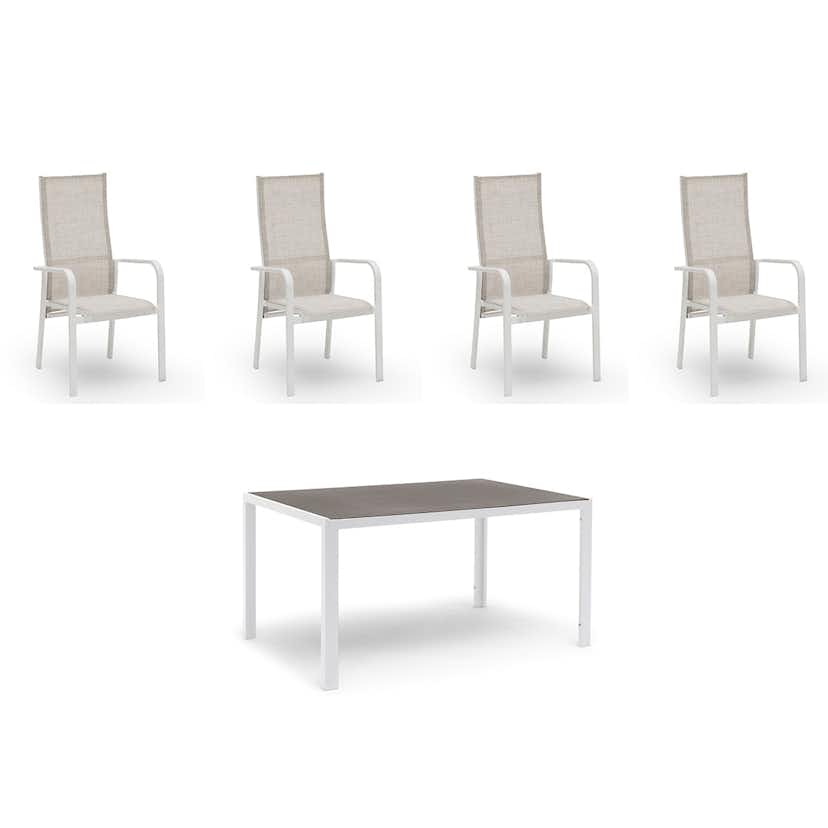 Hånger matgrupp vit/gråbeige - 4 stapelstolar - 140x90 cm