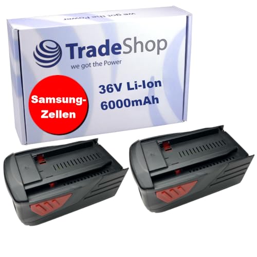 2 x Trade-Shop Li-Ion batteri 36 V/6 000 mAh för Hilti TE6A TE6-A36 TE6-A36 AVR TE6-ALi TE7A TE 30-A36 CPC 36V WSC 7.25-A36 WSC 7.25-A WSC 70-A36 WSR 36-A ersätter Hilti B36 6 B36V B36/3.9 2203932