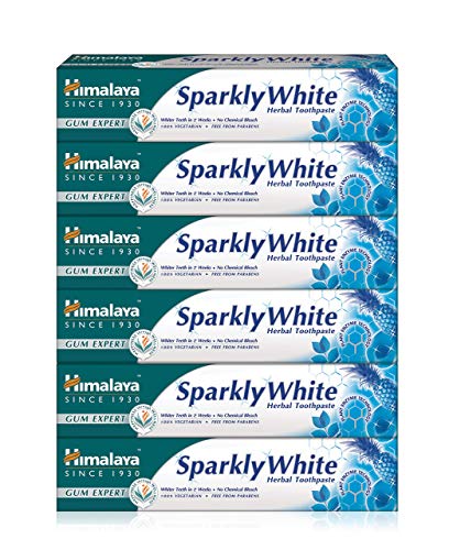 Himalaya Herbals Sparkly White Herbal Vegetarian Toothpaste for whitening teeth with advanced plague removal|Anti-inflammatory 12-Hour Germ Protection-75ml (Pack of 6)