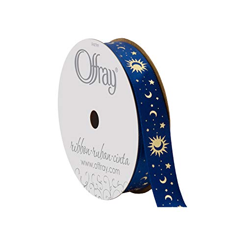 Offray Himmelskt hantverk band, 5/8-tum x 30 fot, marinblå och guld, akryl, flerfärgad, 7,62 x 7,87 x 2,03 cm