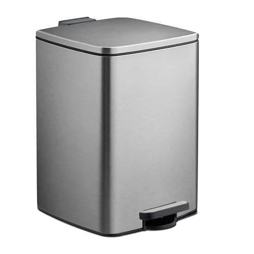 SONGMICS Kökskorg, 20 liter (5,2-gallon) pedalfack, papperskorg, mjukt stängande lock, håller sig öppen, inre hink, inkluderar 15 soppåsar, metalliskt silver LTB543E01